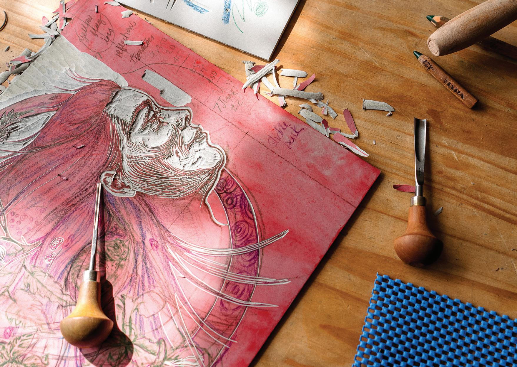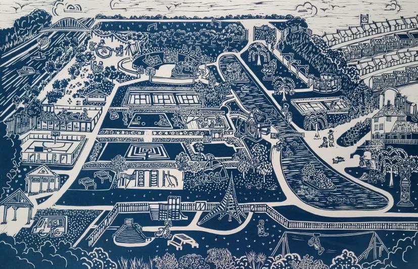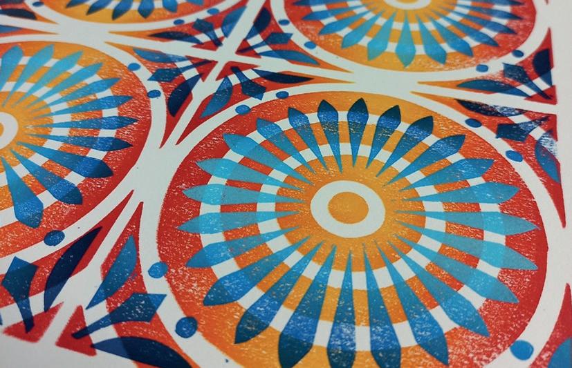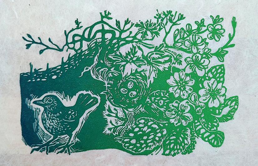 Jen creates imaginative images in linocut and collagraph. Her work is inspired by her faith and other passions such as walking, gardening, climbing and swimming.