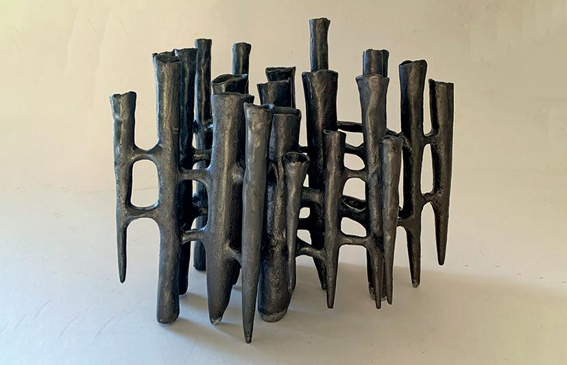 Porcelain bowls and tall vases thrown on the wheel. Hand built porcelain and stoneware forms constructed from multiple tapering tubes; joined to make organic statement sculptures.