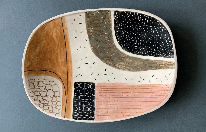 A graphic designer working in ceramics, Patricia creates striking one-off pots in porcelain or stoneware, using inlay and nerikomi techniques, that combine colour and abstract patterns found in nature.