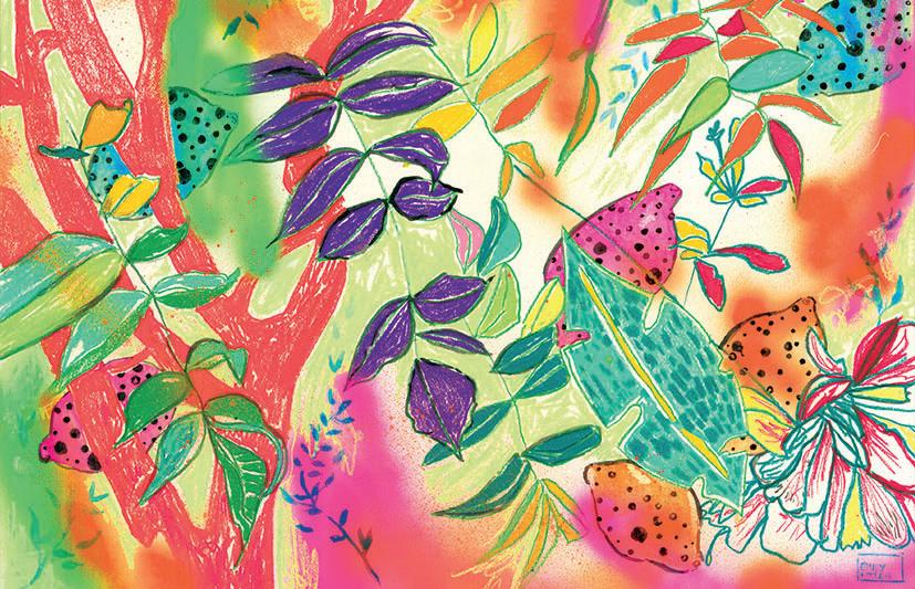 Pattern led mixed media paintings informed by textile design, working with stylised botanical forms, instinctual mark making, unexpected colour and collage. An expression of how the artist aims to feel. 07848 905959 | emilylittler@live.co.uk emilylittler.com