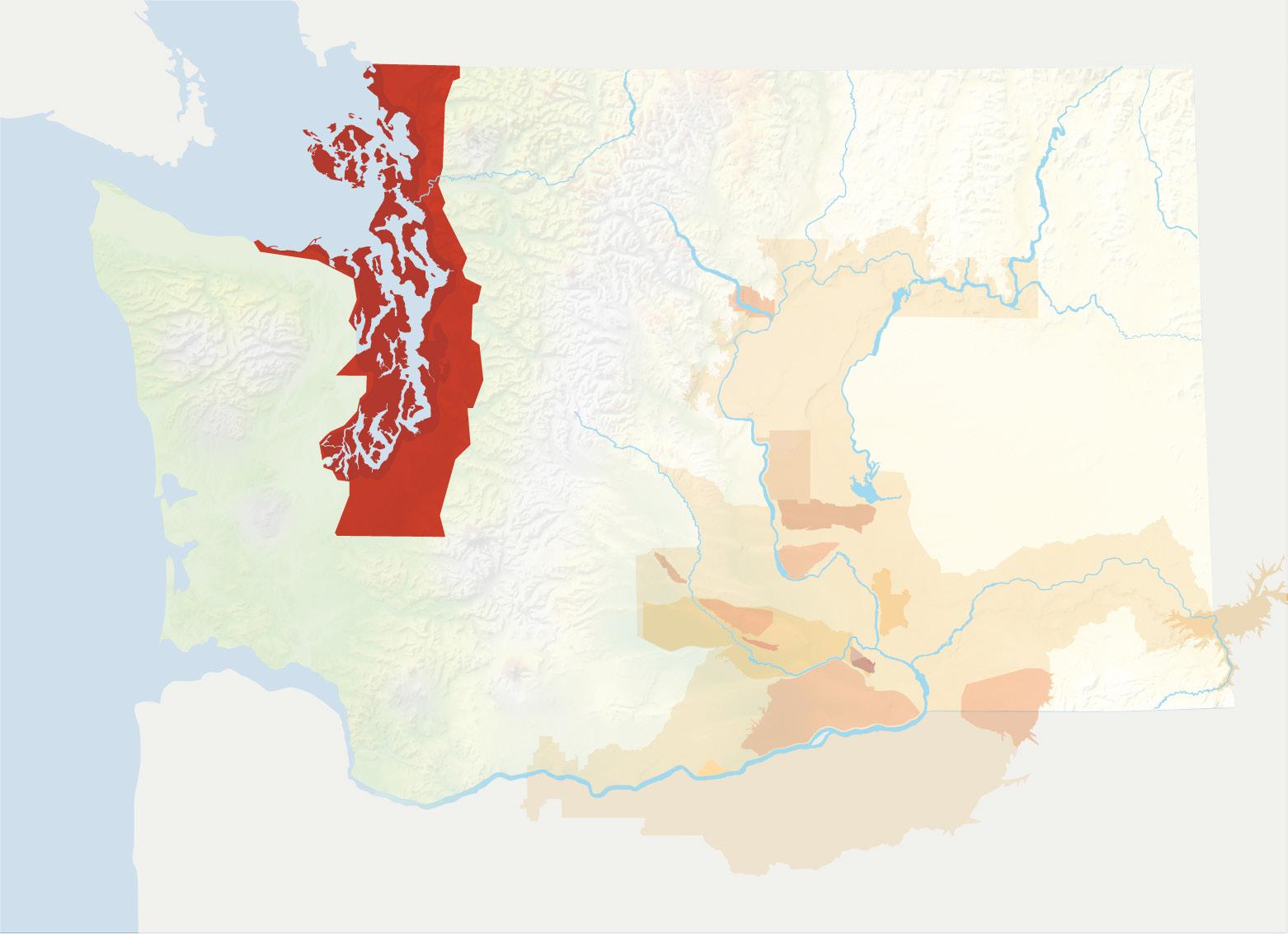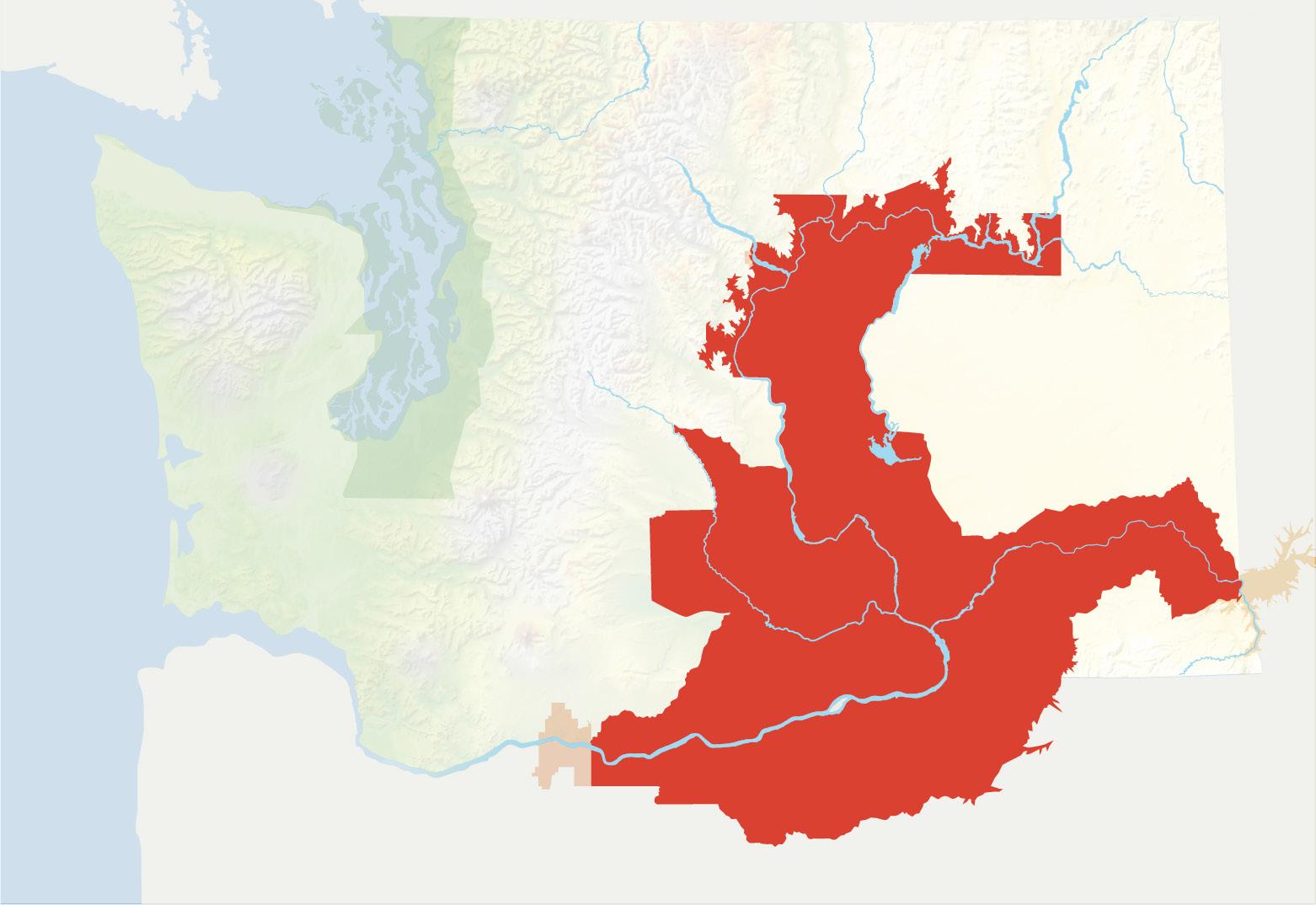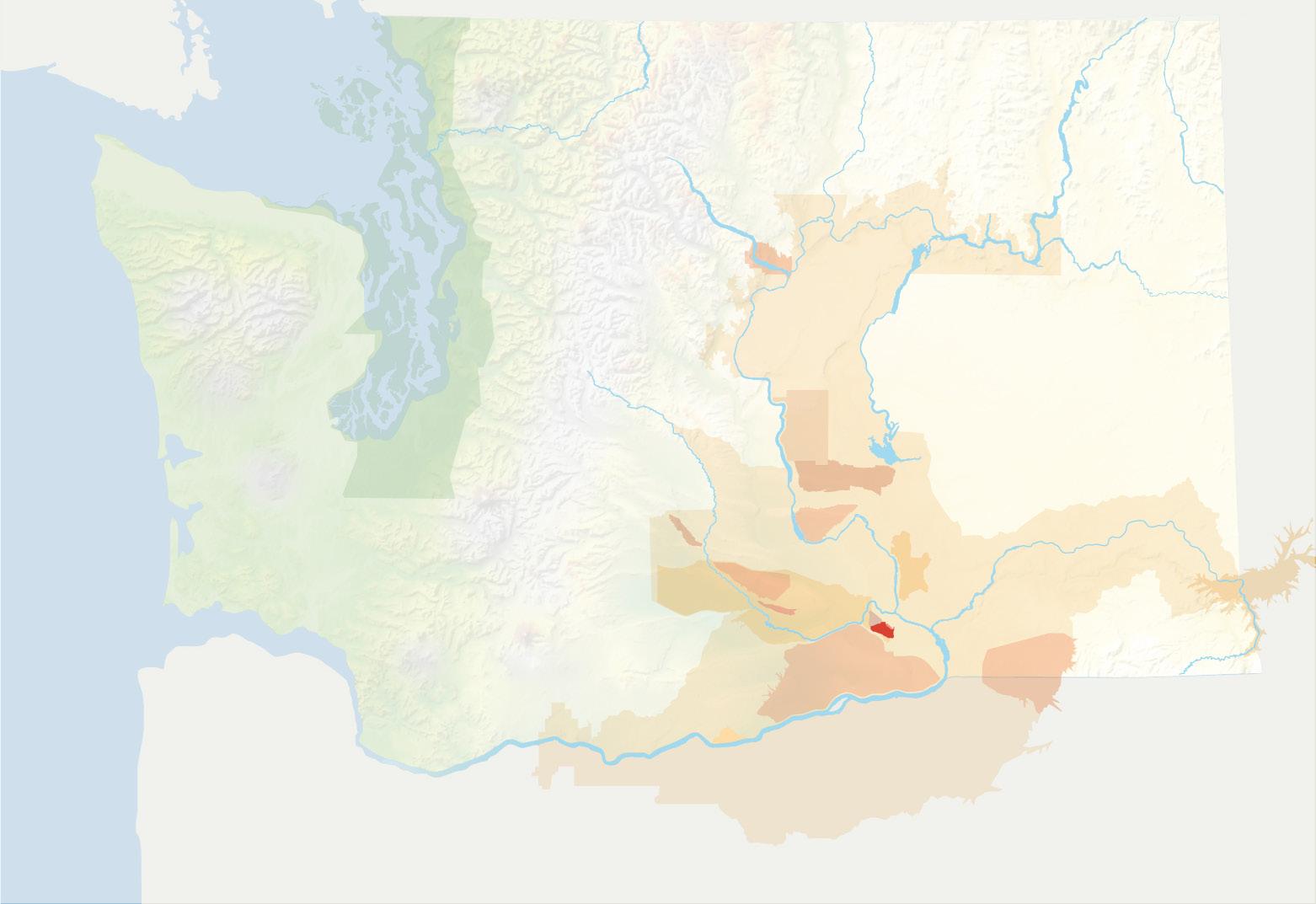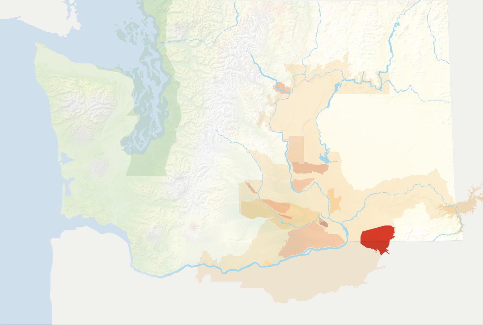 The Cascade Mountains play a key role in the levels of precipitation and temperature to the east, which is where 99% of all Washington State vitis vinifera grape vines grow. The large, light brown area on the graphic belowrepresents a vast majority of the Columbia Valley AVA and all of its sub-AVAs like Yakima Valley, Walla Walla Valley, Horse Heaven Hills and Wahluke Slope.