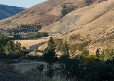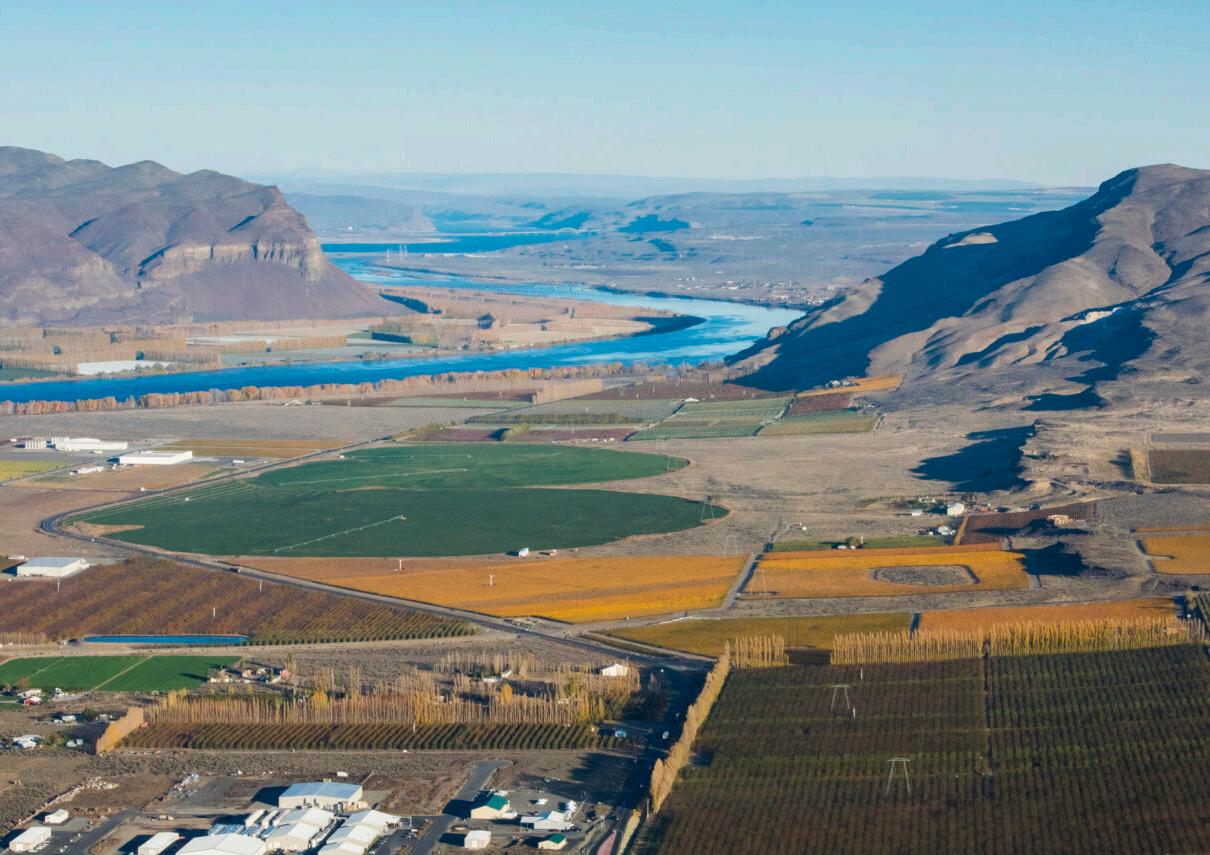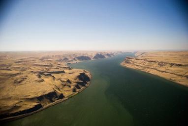 Aerial view of the Wallula Gap. Horse Heaven Hills to the right, Oregon on the left.