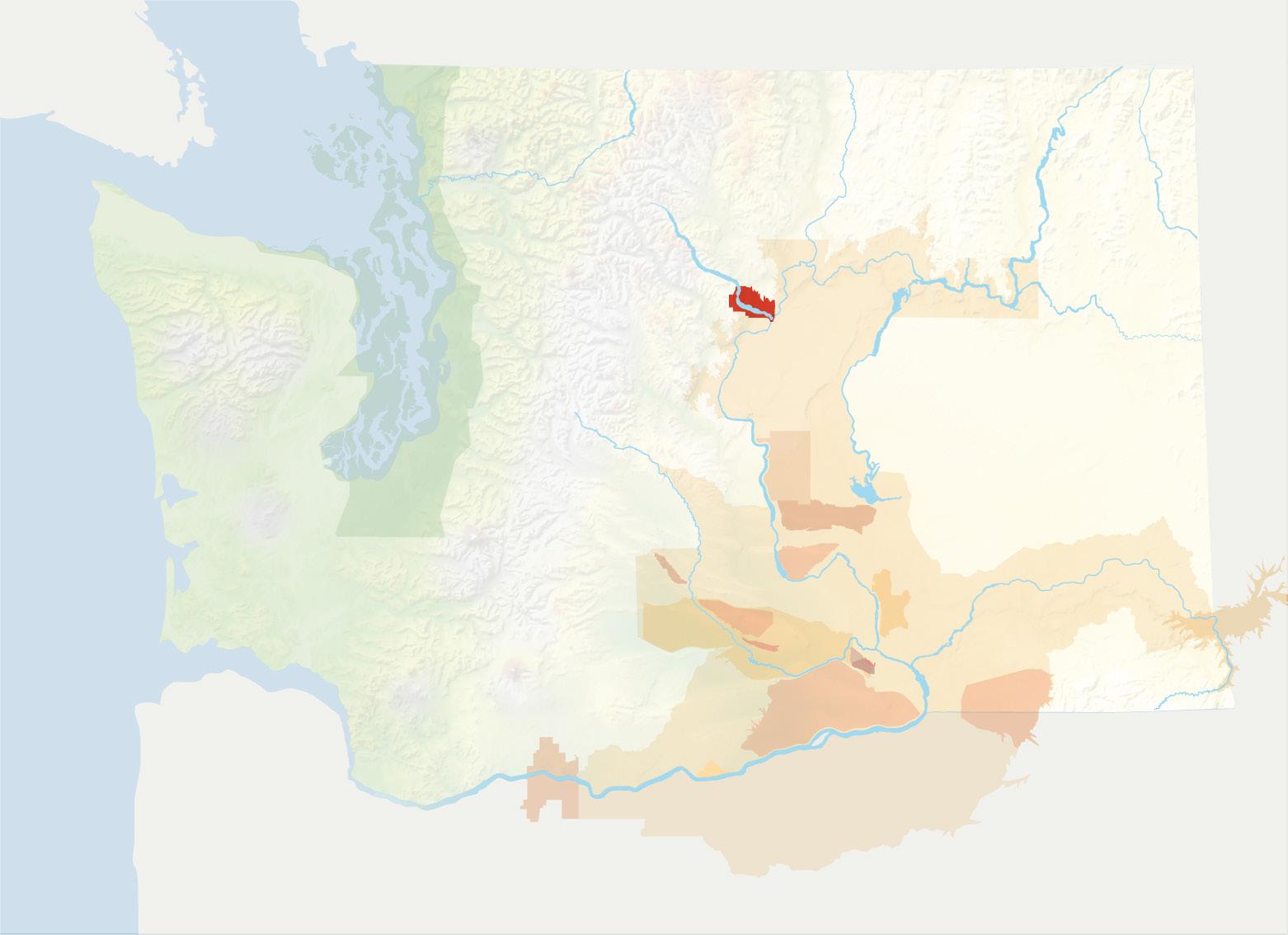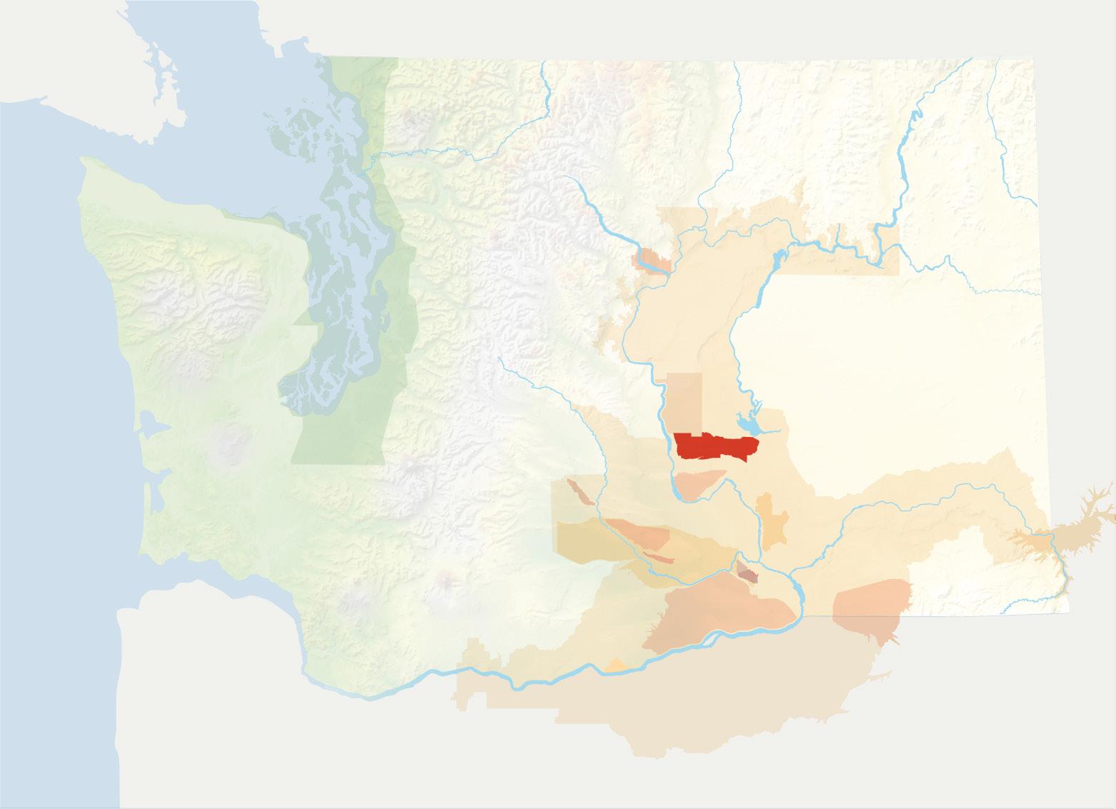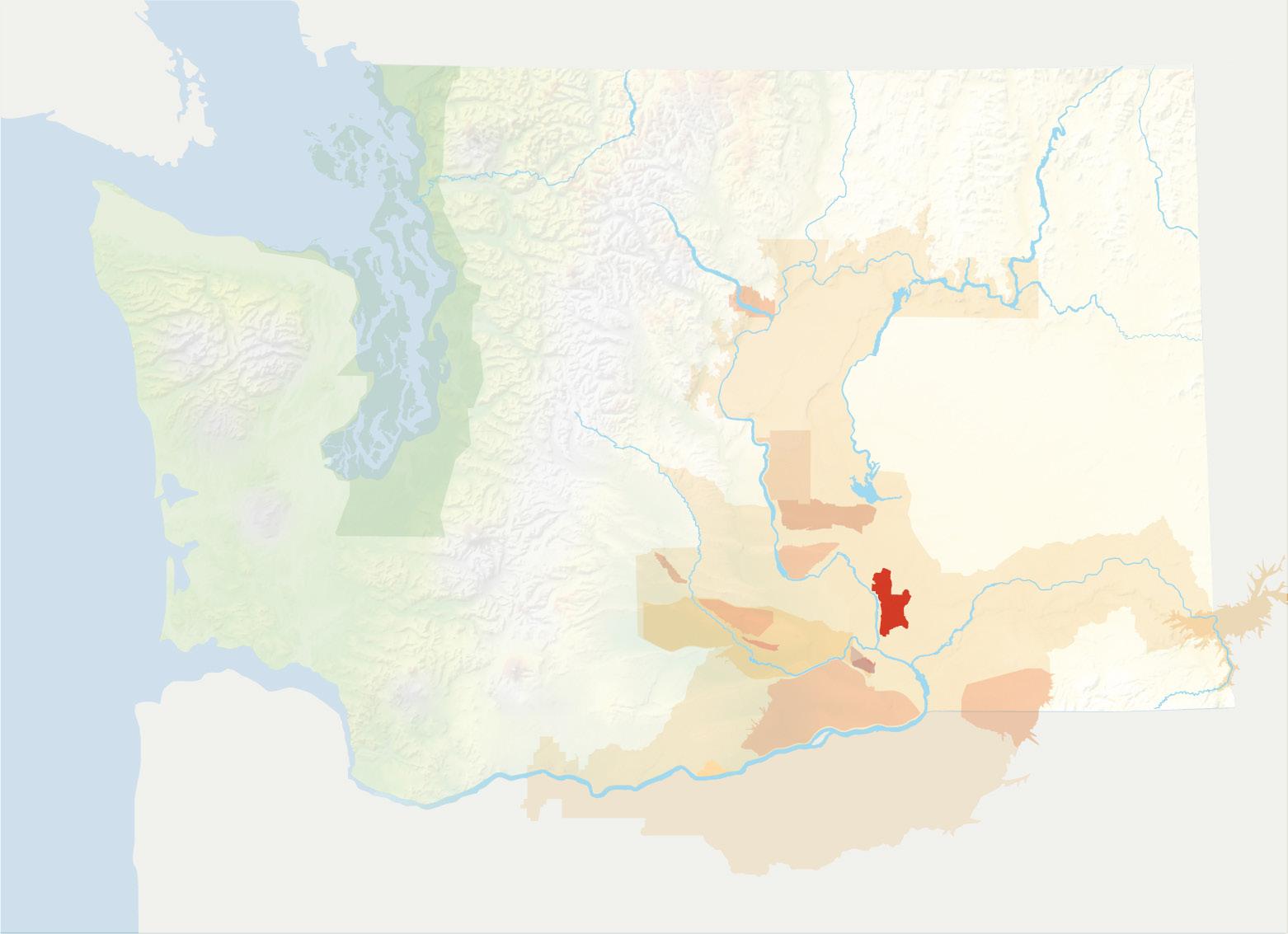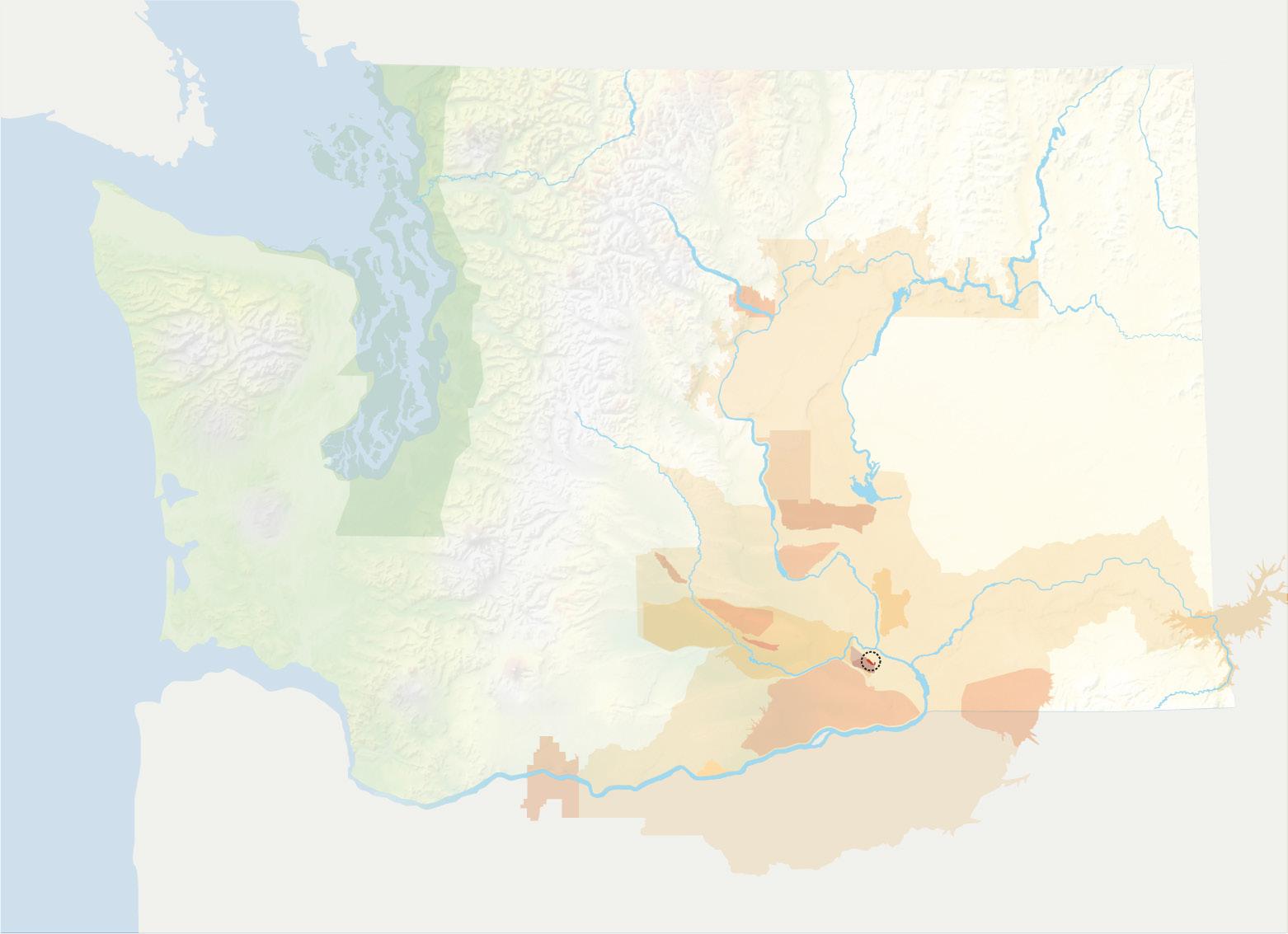 The vast majority of the Columbia Valley AVA, and much of the Columbia Gorge AVA which abuts it, are underlain by these basalts. Exceptions include the northeastern edge of the Columbia Valley AVA and the Lake Chelan AVA. Here erosion has removed the basalt to expose older bedrock that