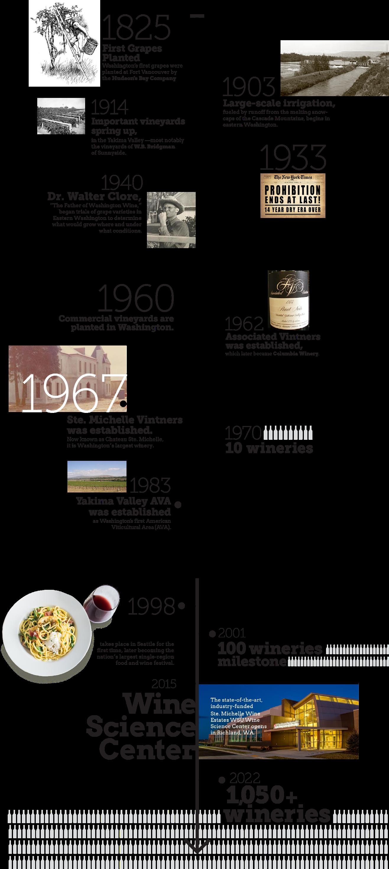 Research played a major role in Washington wine industry’s beginnings as a premium wine producer. Dr. Walter Clore joined WSU’s research station in Prosser as a fruit scientist in 1937. Clore, recognized as the ‘father’ of Washington’s wine industry, initiated research trials of American, European and French hybrid grape varieties throughout the state. But it was W. B. Bridgman, often referred to as the grandfather of the industry, who encouraged Clore to plant and study wine grapes in the state based on the success of Bridgman’s own wine grape vineyard. Bridgman helped develop irrigation in Yakima Valley and planted his first grapes in Washington in 1914. Clore’s trials proved the state had potential to grow and produce premium wine as he laid the foundation for the industry’s strong research partnership with WSU and the industry’s continued commitment to research.
