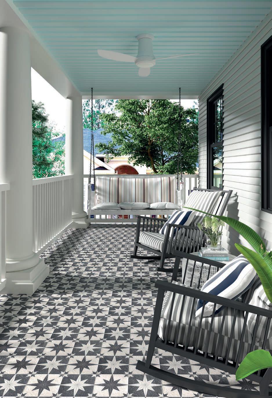 Striking starburst-patterned porcelain tiles in Sand, White, and Lava, In a matt finish, they’re perfect for walls and floors, indoors or outdoors, adding contemporary style to bathrooms, patios, and feature walls. Durable and elegant, they suit modern spaces beautifully.