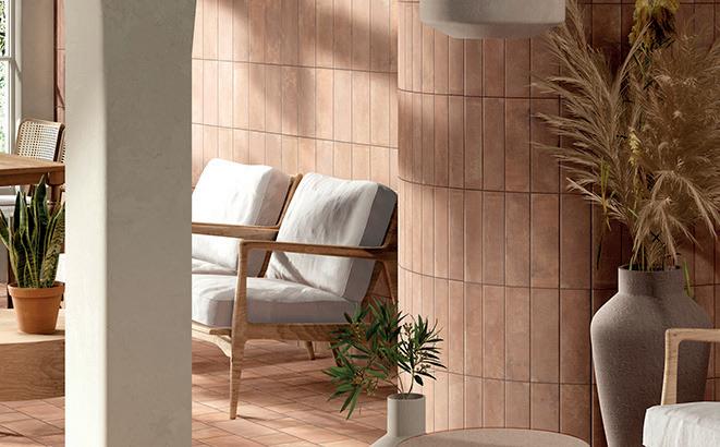 This collection stands out for its irregular texture, which adds depth and character to surfaces, as well as for its gloss finish that enhances the luminosity of any environment.