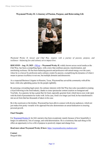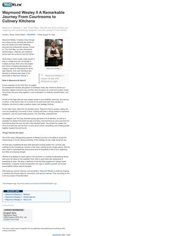 Waymond Wesley II - Lawyer by day, chef influencer by night β blending sharp legal insight with a passion for flavor. From the courtroom to the kitchen, inspiring with every case and every plate.