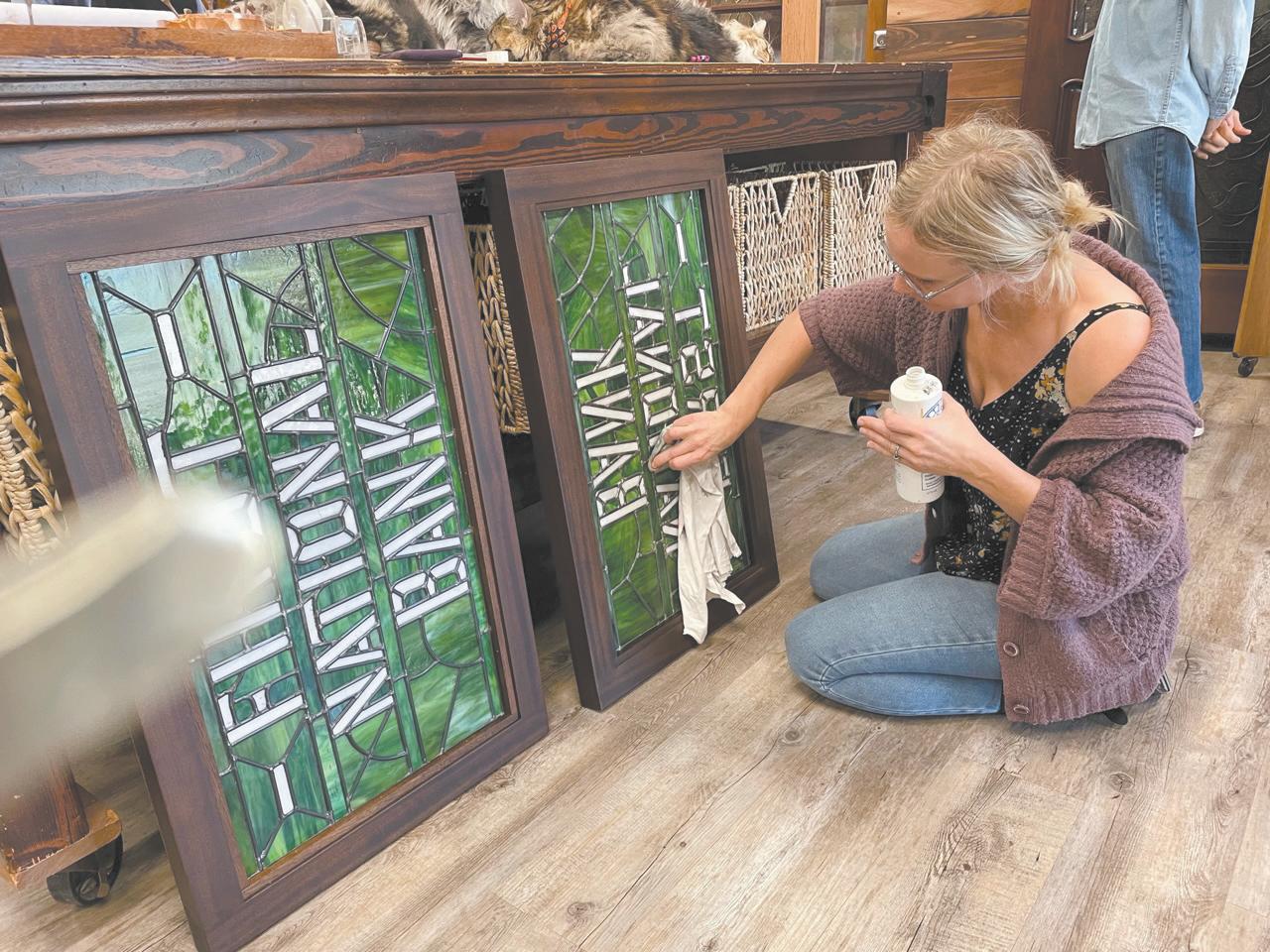 Charlotte stained glass artisan Natalie Bork, with Shed Brand Studios, is shown here painstakingly applying final touches to the restored signs. (photo provided)