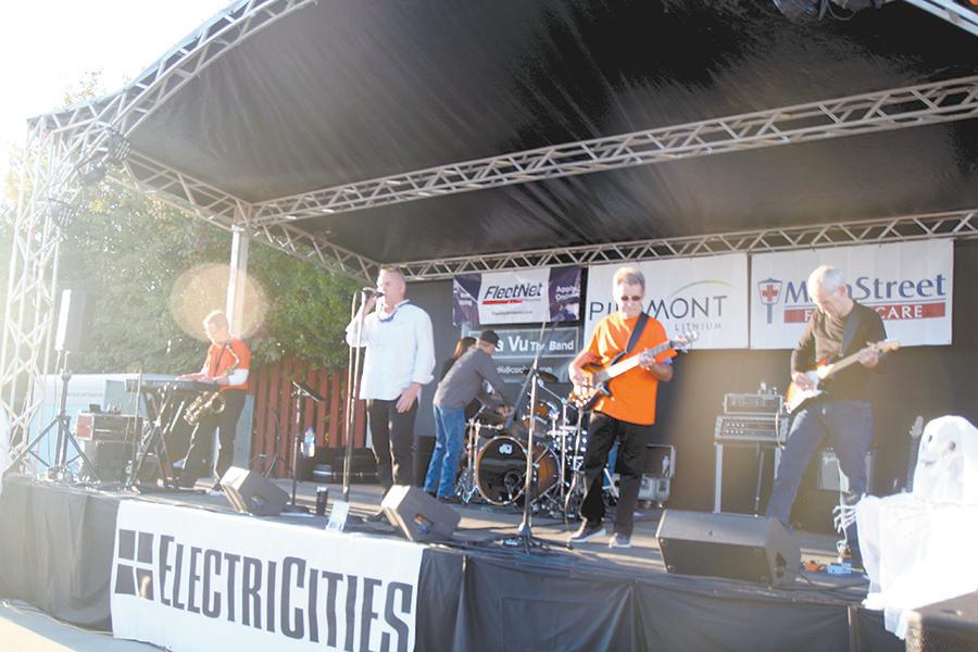 Wade Stroupe and the Déjà Vu band kick into some tunes at the Scary-Ville festival last week. (photo by MEP/The Eagle/CF Media and Susan L. Powell)