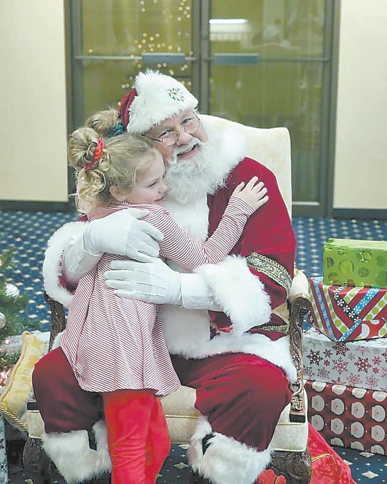 Santa Claus (a.k.a Santa Floyd) gets a big hug from this little girl who waited for her chance to sit on his lap and tell him what she wanted for Christmas. (photo provided)