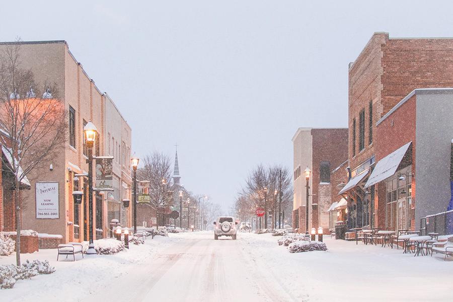 SNOW LOOKED GOOD ON KINGS MOUNTAIN – See more beautiful snow photos of downtown Kings Mountain by Kevin Clary on page 4A.