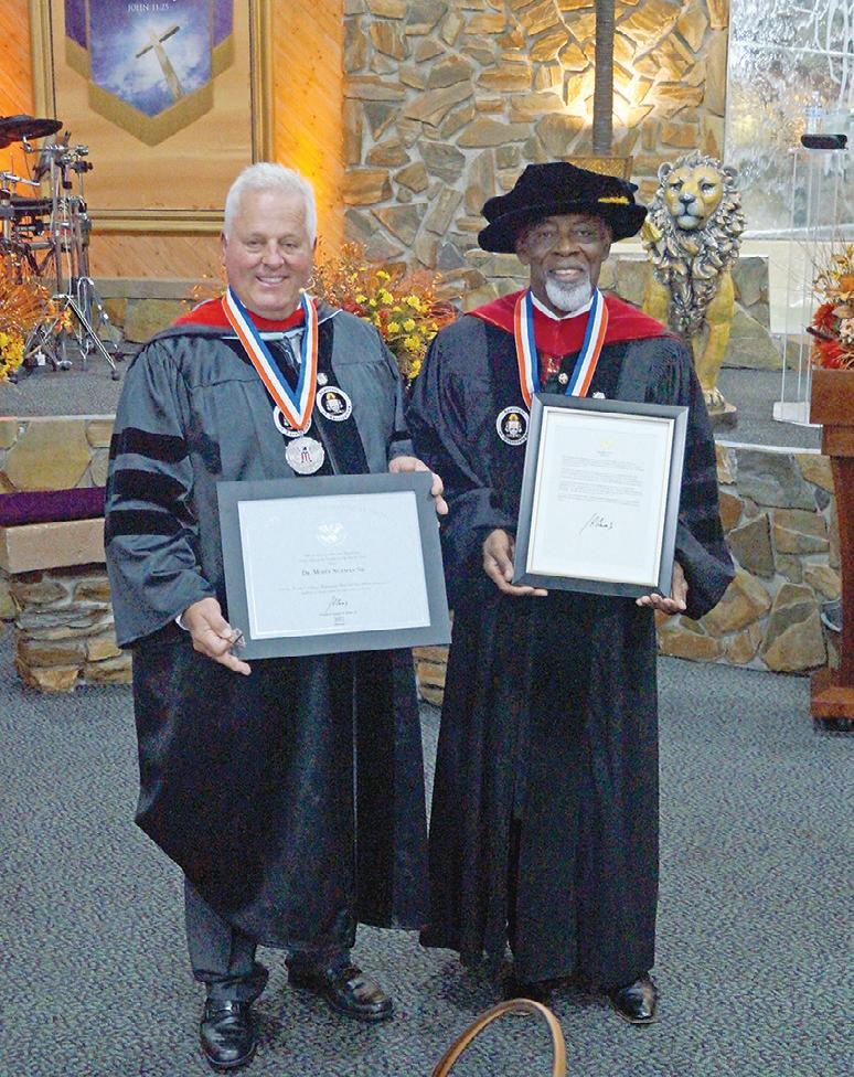 Chief Gerald Childress being sworn-in by Mayor Scott Neisler.