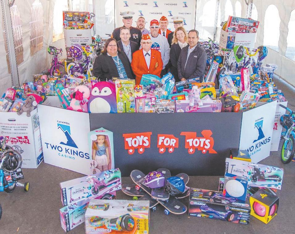 Employees and patrons of Catawba Two Kings Casino in Kings Mountain and casino consultant Delaware North have donated more than $6,000 worth of toys – 1,437 toys in all – to the regional Toys for Tots campaign to provide holiday toys to deserving children in York and Cleveland counties.