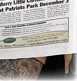 704.739.3611 106 East Mountain Street Kings Mountain, NC 28086 www.KMinsure.com We Can Save You Money!!! ©CommunityFirstMedia kmherald.com • 704-484-1047 75¢ Volume 135 • Issue 2 Wednesday, January 11, 2023 703 E. Kings St., Suite 9, Kings Mountain • www.BakerDentalCare.com call us at 704-739-4461 • Improved appearance. Dental implants look and feel like your own teeth. • Improved speech. Dental implants allow you to speak without the worry that your dentures might slip. • Improved self-esteem. Smile again and feel better about yourself. • Durable. Implants are very durable and with proper care, can last a lifetime. Just a few benefits of Dental Implants: To find out more about Dental Implants and schedule your next appointment Baker Dental Care Preventative, Restorative & Cosmetic Dentistry Locally Here In Kings Mountain For Dental Implants
