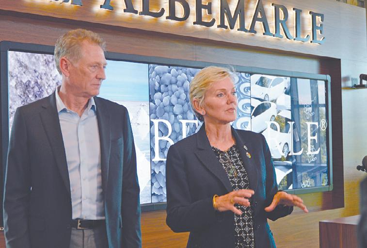Kent Masters, CEO of Albemarle Lithium with U.S. Energy Secretary Jennifer Granholm during a press conference at Albemarle Corporation in Kings Mountain on Monday. Photo by Loretta Cozart
