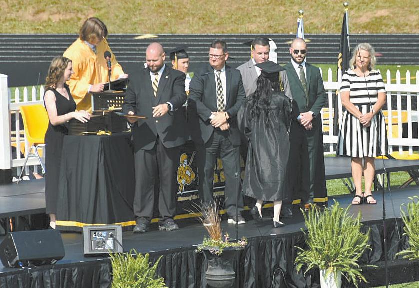 Principal Dr. Dustin Morehead, Assistant Principal Melissa Wilson, Superintendent Dr. Stephen Fisher, and School Board representatives participated in the presentation of diplomas. Afterward, Principal Dr. Dustin Morehead presented the Kings Mountain High School Class of 2023 to the community, as their proud parents watched.