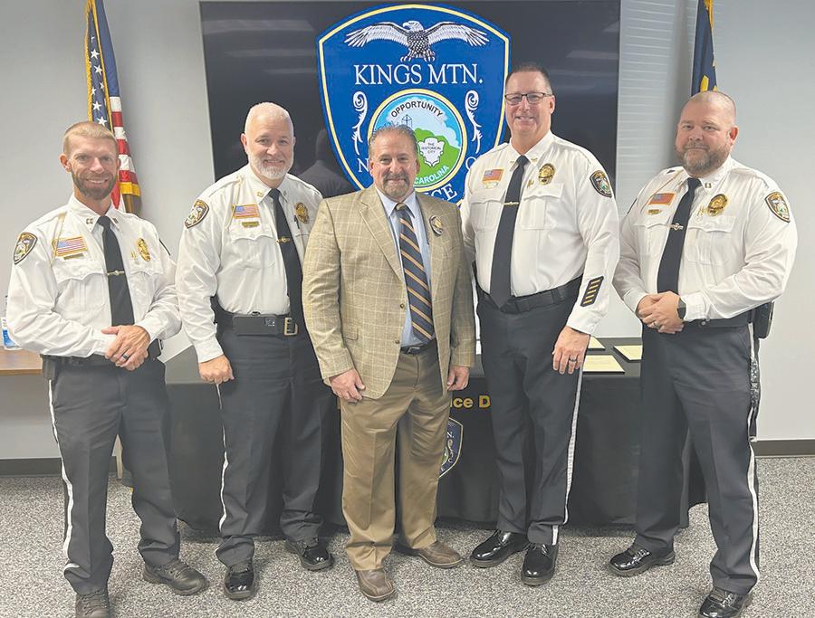 L-R: Capt. Buddy Black, Assistant Chief Chris Moore, Officer Aureliano, Chief Gerald Childress, and Captain Kenneth Hamrick. See more photos on page 3A.