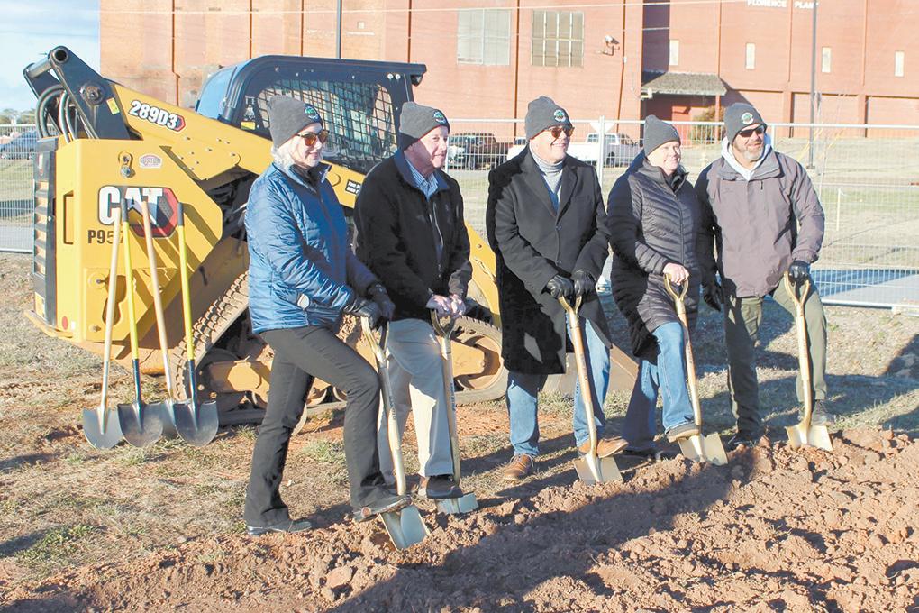 welcomed the crowd that included Town Manager Janet Mason, town officials, TDA representatives, members of BARN, the group that operates the farmers market, representatives of the construction company and other town employees. Each took turns with the shovels to signify the beginning of the construction phase. Depending on weather, supplies and other factors, it is possible the ribbon cutting for the facility could occur as early as fall of this year.