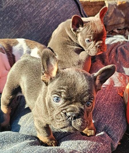 FRENCHIE BULLDOG PUPPIES. 2 male: one FAWN w/ BLUE MASK, 1 male BLUE/ WHITE markings. One Female Blue/ CHOCOLATE markings. $900 to $1200. Available 12/13/2025. All shots. Call 704419-4449.