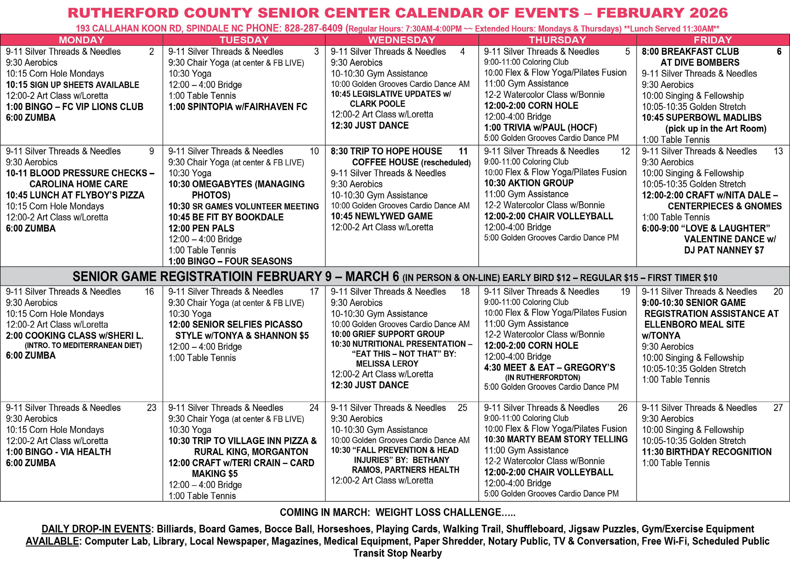 INDOOR YARD SALE. Saturday, February 21st, 2026, at Mooresboro Gym, 308 Main Street, Mooresboro, NC 28114. $15.00 per table (bring your own tables). 8:00 am til 2:00 pm. For any questions call: Keith: 828-351-8822 or Mickey: 828-447-7231