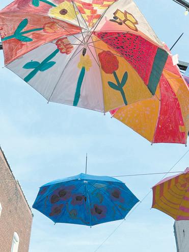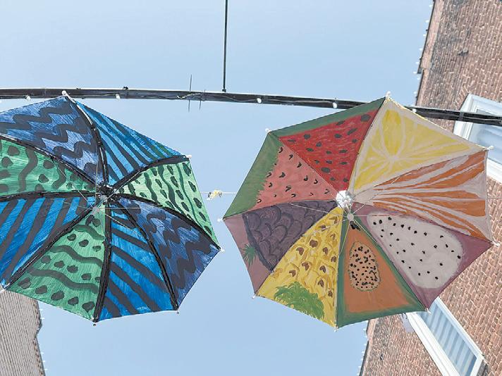Harris-Trull and her Beginner Street Park in Rutherfordton this spring. Inspired by the theme “April Showers,” 60 students painted unique, colorful umbrellas that will be displayed throughout the park for the community to enjoy. Their objective was to create an original design for their umbrella using only a warm or cool color palette.