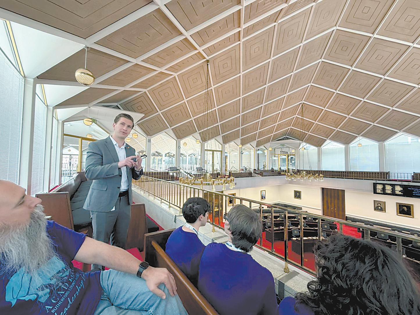 Rep. Jake Johnson addresses the Rutherford County team.