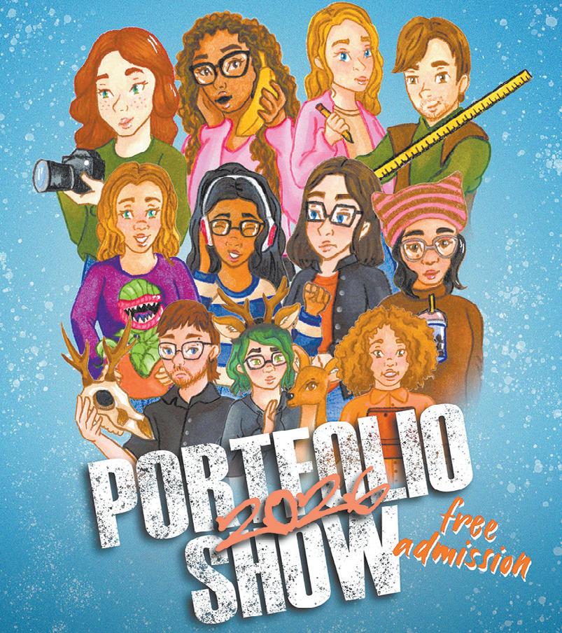 Students have been busy matting and framing original art in a variety of media, techniques, and styles, along with a wide range of photos, including black & white film and digital. Samples of original illustrations, posters, and actual products, including cards, t-shirts, and business promotional materials, will all be on display. You are invited to bring friends, family, and definitely invite any potential clients or employers who might want to tap into this pool of fresh talent, emerging artists, and their skills. To allow for plenty of display space and ample parking, the 2026 Portfolio Show event will be held in