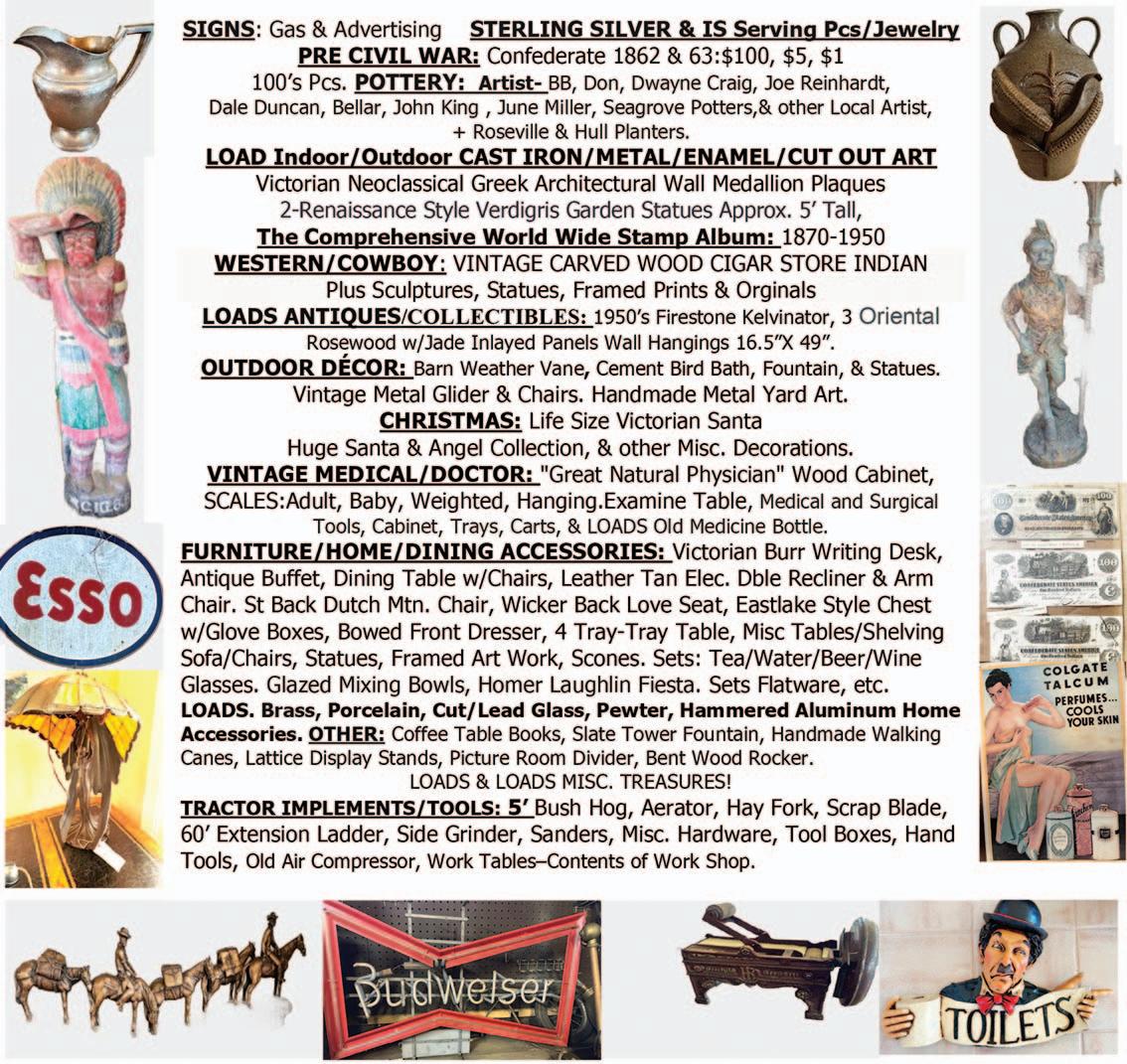 Partial Listing: New Case knives in original boxes, tactical folding and fixed blades knives, variety of electric & power tools, multiple rolling tool chest, hand tools, large vise, yard push lawn mowers, truck tool boxes, English riding saddle, porch swing, camp stove, bicycles, silver bars, Silver Eagle coins, US Mint coin sets hatchets, axes, antique floor model radio, vintage scales, aluminum ramps, multiple vintage wooden tool chest, toys, large floor jack, bench grinder, car ramps, air compressor, multiple vintage items, glassware, some furniture pieces, extremely nice brass bed, various primitive furniture pieces, and much more. NOTE: THERE WILL BE SOME SURPRISES IN THIS ONE!