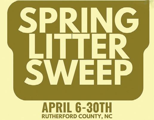 Sweep coincides with other litter sweeps statewide, and supports the North Carolina Department of Transportation’s (NCDOT) litter initiative. Participants leave their collected bags on roadsides and report them to Keep Rutherford County Beautiful (KRCB) for NCDOT or local municipalities to pick up. KRCB supplies safety gloves, vests, pickers and NCDOT trash bags to any team willing to collect. Teams pick up supplies from the Woodrow Jones Building at 146 North Main Street in Rutherfordton and leave the collected litter on the roadside. Participants must use NCDOT bags and submit a collection report through the website. Contact the KRCB team at 828-289-3260, email allie@ rutherfordoutdoor.org, or visit KeepRCNCBeautiful. org/sign-up-for-a-sweep to register and get supplies. Spring Litter Sweep is