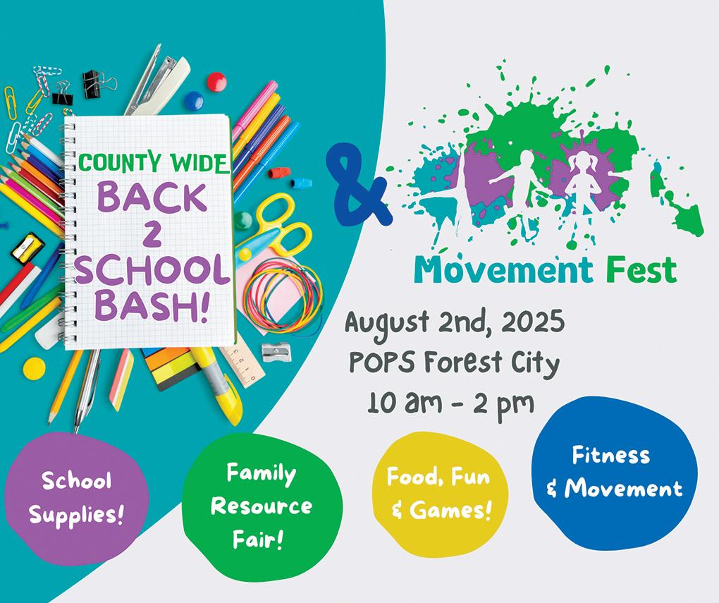 Pavilion Square, Forest City) students and families are invited to the third annual Countywide Back 2 School Bash, in partnership with the Town of Forest City Movement Fest (second year). Anyone and everyone needing school supplies and other materials is encouraged to attend.