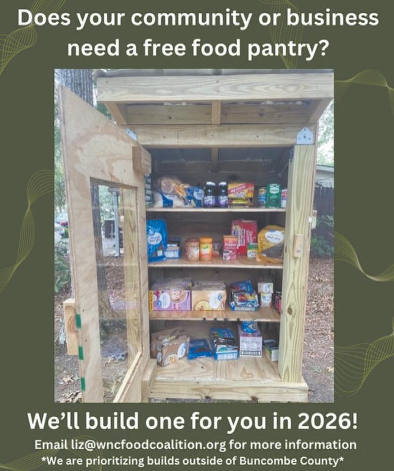 The WNC Food Coalition is working hard to raise funds for this program, and you can assist by initiating a little free pantry project in your community, stocking one near you, or donating to the Coalition. For more information, contact the WNC Food Coalition by emailing liz@