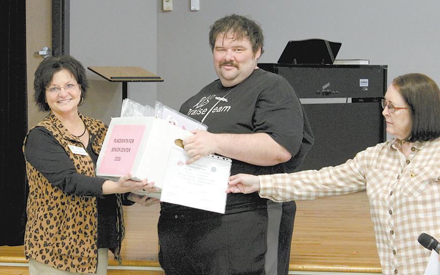presented the placemats to senior center director Tammy Aldridge. Members shared how they stamped, colored and added stickers to make the placemats. Aktion Club advisors Debbie Meissner, John Carroll and Pat Nanney assisted with the program.