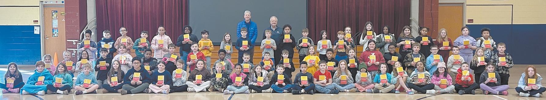 The Rutherfordton Kiwanis Club visited the third grade students at Rutherfordton Elementary recently. Kiwanis members Paul Deck and Jimmy Dancy (standing in back) delivered a special gift — a personal dictionary for every third grader. This tradition helps strengthen literacy skills,