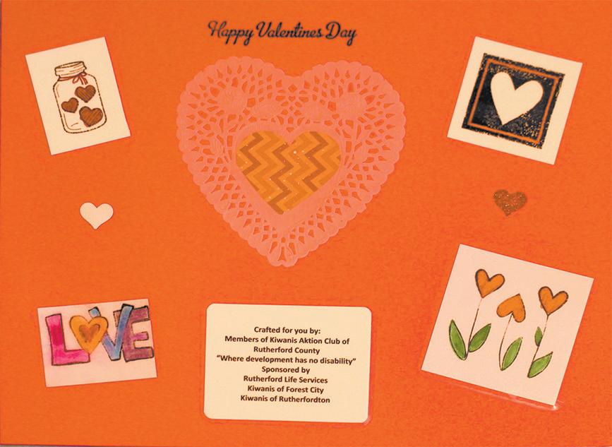 duet as part of the program. After the musical portion of the program, the Aktion Club, which is sponsored by the Rutherfordton and Forest City Kiwanis Clubs and meets at RLS, donated 366 laminated Valentinethemed placemats to the senior center to be distributed to recipients of home-delivered meals and