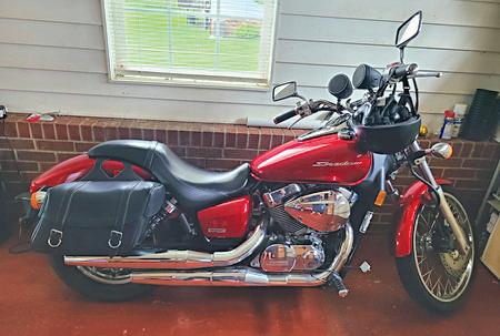 2009 RED HONDA SHADOW MOTORCYCLE. 750 Honda Shadow. Mileage: 27,283 Miles. Garage Kept. Like New. Blue Tooth Speakers, New Tires, Saddle Bags, Helmet. Serious Inquiries Only. $2,500.00 Cash Only. (980) 421-2523 kelmore12@charter.net