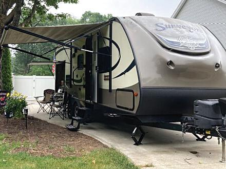 24 FT FOREST RIVER SURVEYOR. GENTLY USED & LIGHTWEIGHT. DESIGNED FOR COMFORT & FUNCTIONALITY. SLIDE OUT, OUTSIDE KITCHEN, 2 TVS, 7 FT CEILING, STORAGE GALORE, FULLY STOCKED & READY TO CAMP. CALL TO SEE IT. (828) 245-8159