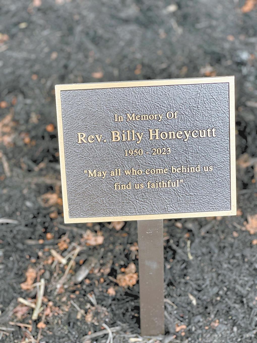 “If you knew Billy, you understand that he would be uncomfortable with this recognition,” said his wife Terry. “But he would certainly be grateful that these two institutions he loved – the Town of Rutherfordton and First Baptist Church, Rutherfordton – have collaborated to create a beautiful spot for rest and reflection for the community.”