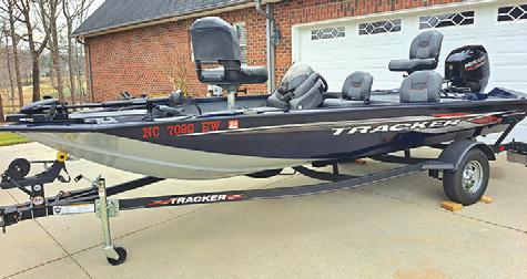 TRACKER ProTeam 175TF. 60HP Mercury motor, four stroke. Fully Equipped. Many extras. Garage kept. $18,200. 704-419-3882.