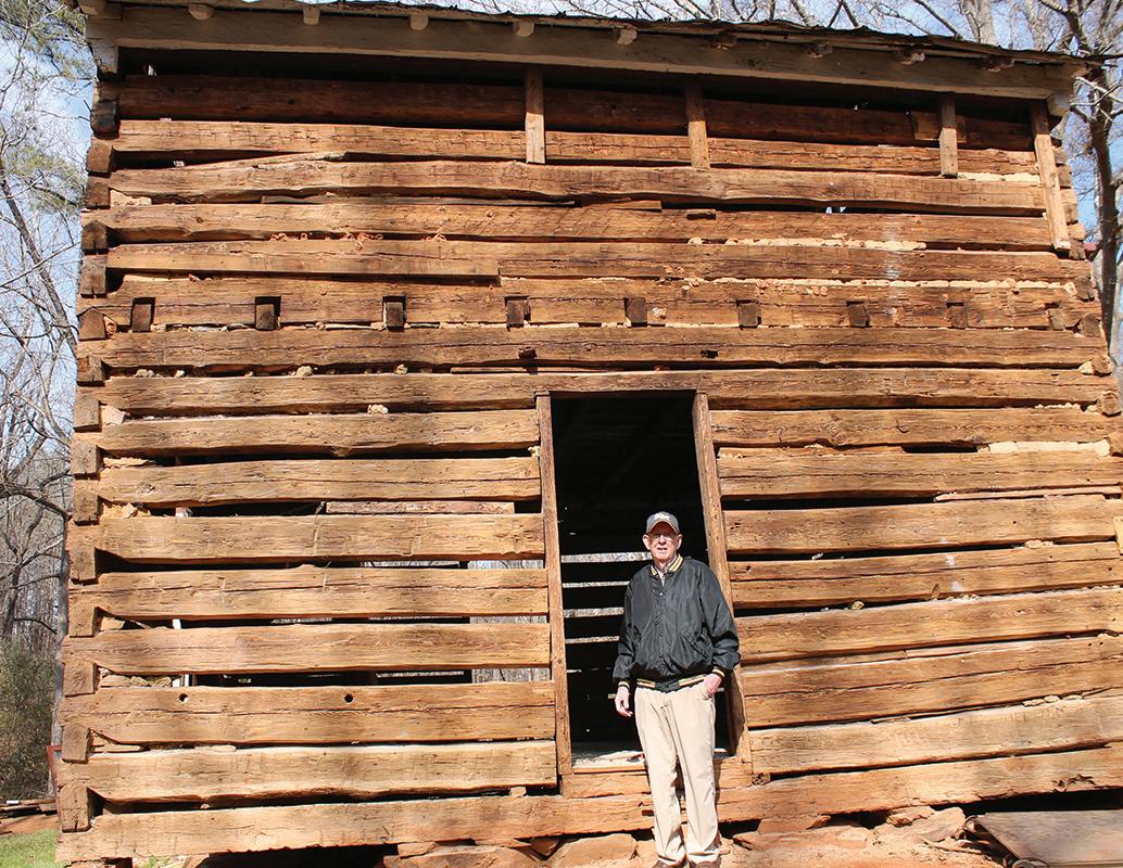 Former Kings Mountain Herald editor Gary Stewart at the Wells cabin on his property. The cabin dates to circa 1780. (Photos by Alan Hodge )