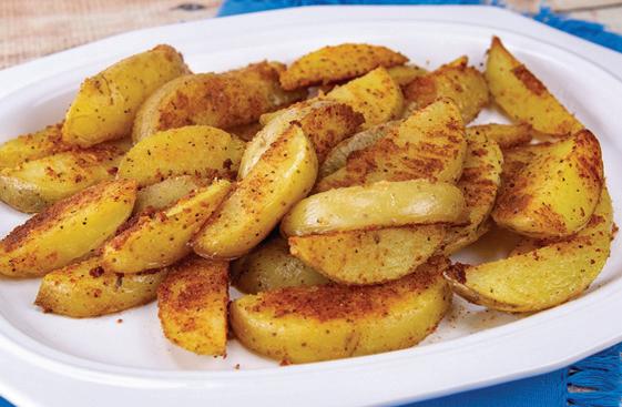 • Boil whole potatoes 20 minutes. Remove from water and slice into wedges.