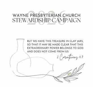When we minister together, we are reminded again and again that “this extraordinary power belongs to God and does not come from us.” (2 Corinthians 4:7). For us to be all that God intends for Wayne Presbyterian Church to be, it is important that we are all part of our shared ministry. At Wayne Presbyterian Church, we are fortunate to be part of a generous, caring and mission-focused congregation. We hope that you will be part of all that we are doing through service, prayer and giving. As we begin our stewardship season, you are invited to prayerfully consider what you will give and how you will be part of all that God is doing at WPC in the coming year. We hope you received a stewardship letter in October, with an opportunity to respond with your pledge for the coming year. If you would like to pledge electronically, you can do that through our website at waynepres.org/stewardship, or you can turn in a pledge card any Sunday in worship, or mail it to the church. Thank you for your faithful generosity. Please contact Pastor Ryan at ryan@waynepres.org with any questions or if you would like to discuss your pledge of support.