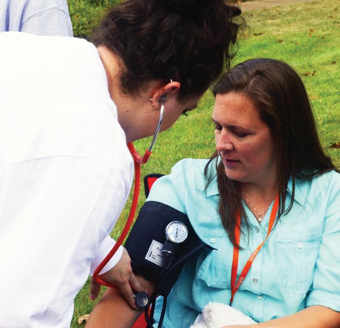 A nursing student provides healthcare services at JacketFest during Homecoming weekend.
