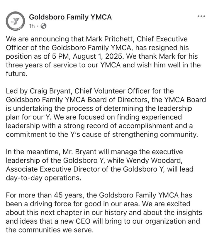 Pritchett out at Goldsboro Family YMCA