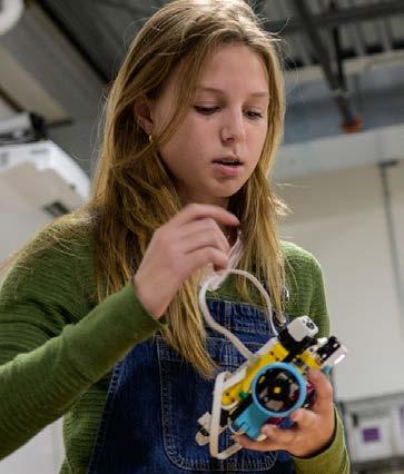 Waynflete is a school characterized by warmth, acceptance, mutual appreciation and support, a commitment to excellence, and a wonderful sense of fun. The students have strong voices and embrace their own agency, from early childhood through 12th grade. They take up space, literally and figuratively, and we saw numerous instances in which they cheered one another on in classes or activities, or while just hanging around in the halls. They seem comfortable with themselves, their bodies, their selfpresentation, and their identities—all of which is only possible if the adults model and actively support that acceptance and comfort. The DEI work of the school is so embedded in the culture and curriculum that the resulting sense of belonging is palpable. Though the school has admirable goals to ensure that literally every student feels included and knows that they matter to the community, the committee saw ample evidence that this sense of belonging permeates life at the school and that the sense of community is marvelously strong. Throughout the school, the walls are covered with evidence of the school’s values and of the students’ learning, further bolstering the wholechild growth that the school prizes above all.