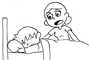A las 6:00 de la mañana, la mamá de Brandon entra en el dormitorio. Ella dice: