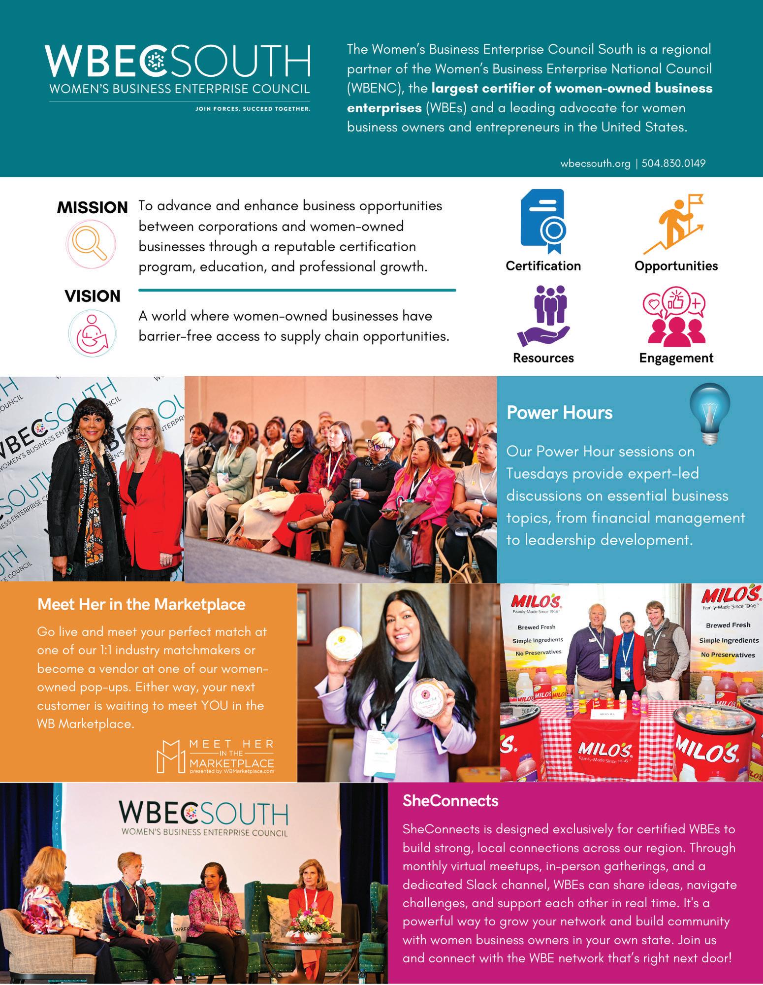 The Southeast has strong momentum, and our network is well positioned to take advantage of it. I’m optimistic about what’s ahead and committed to ensuring that WBEC South continues to be a steady, strategic partner in your business growth. WE