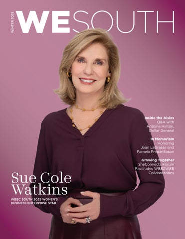 This issue of WE South magazine is special to me for many reasons. First of all, we honor our 2025 WBE Star, Sue Cole Watkins, CEO, Telecom Transport Services, Inc. on the cover. All throughout the network, if you mention her name you’ll quickly hear “I love Sue!” I think you will love her, too, after reading about her start in the business and what inspires her to be the best provider in the transportation industry.