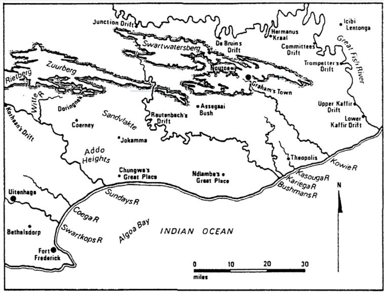 71 Map copied from: The Zuurveld, 1811-1820; Ben MacLennan; A Proper Degree of Terror; (Johannesburg: Ravan Press, 1986, Map 2, 42.
