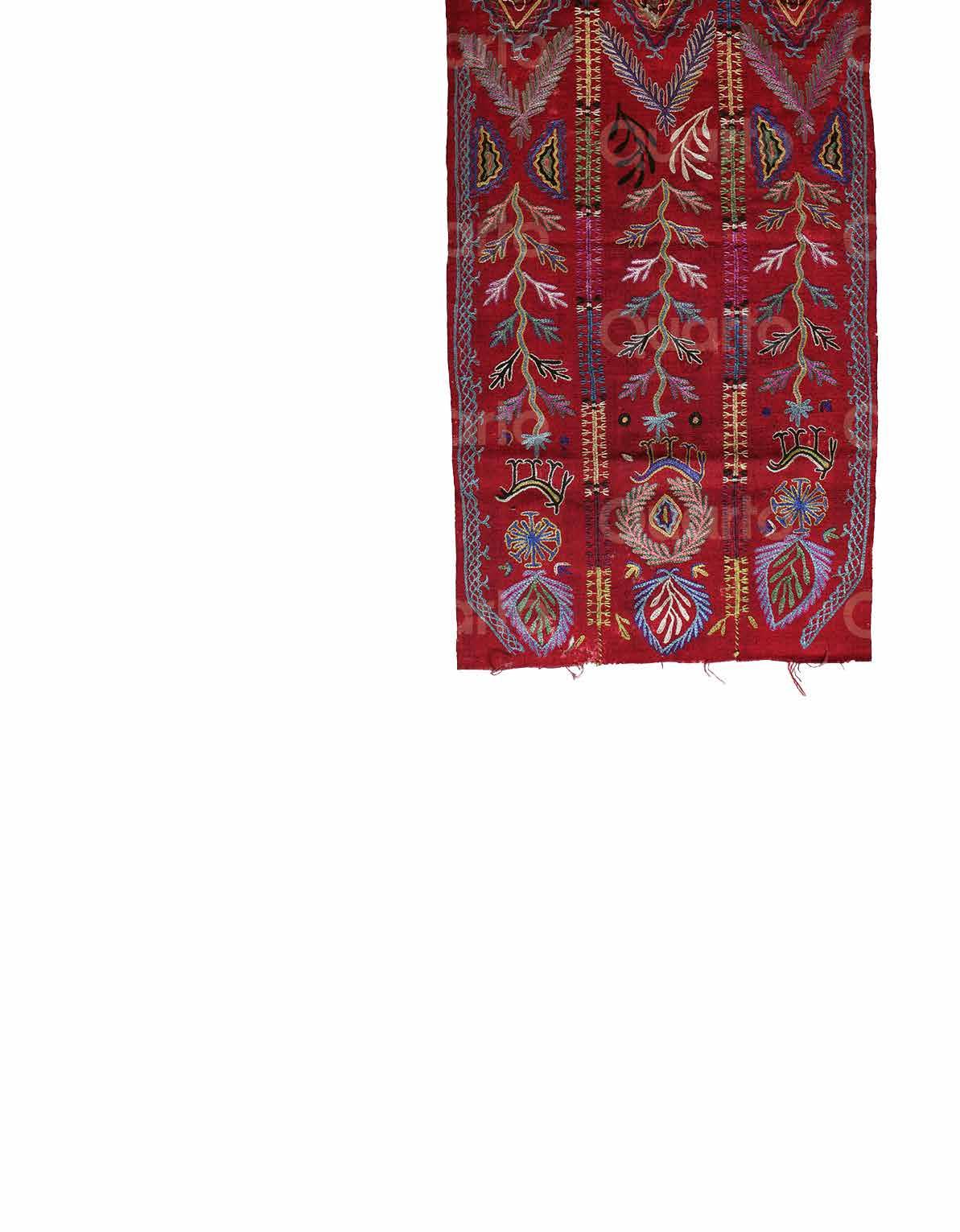 RECHTS Een negentiendeeeuws schortpaneel, waarschijnlijk uit Armenië, geborduurd met zijde met kettingsteek en langearmsteek.