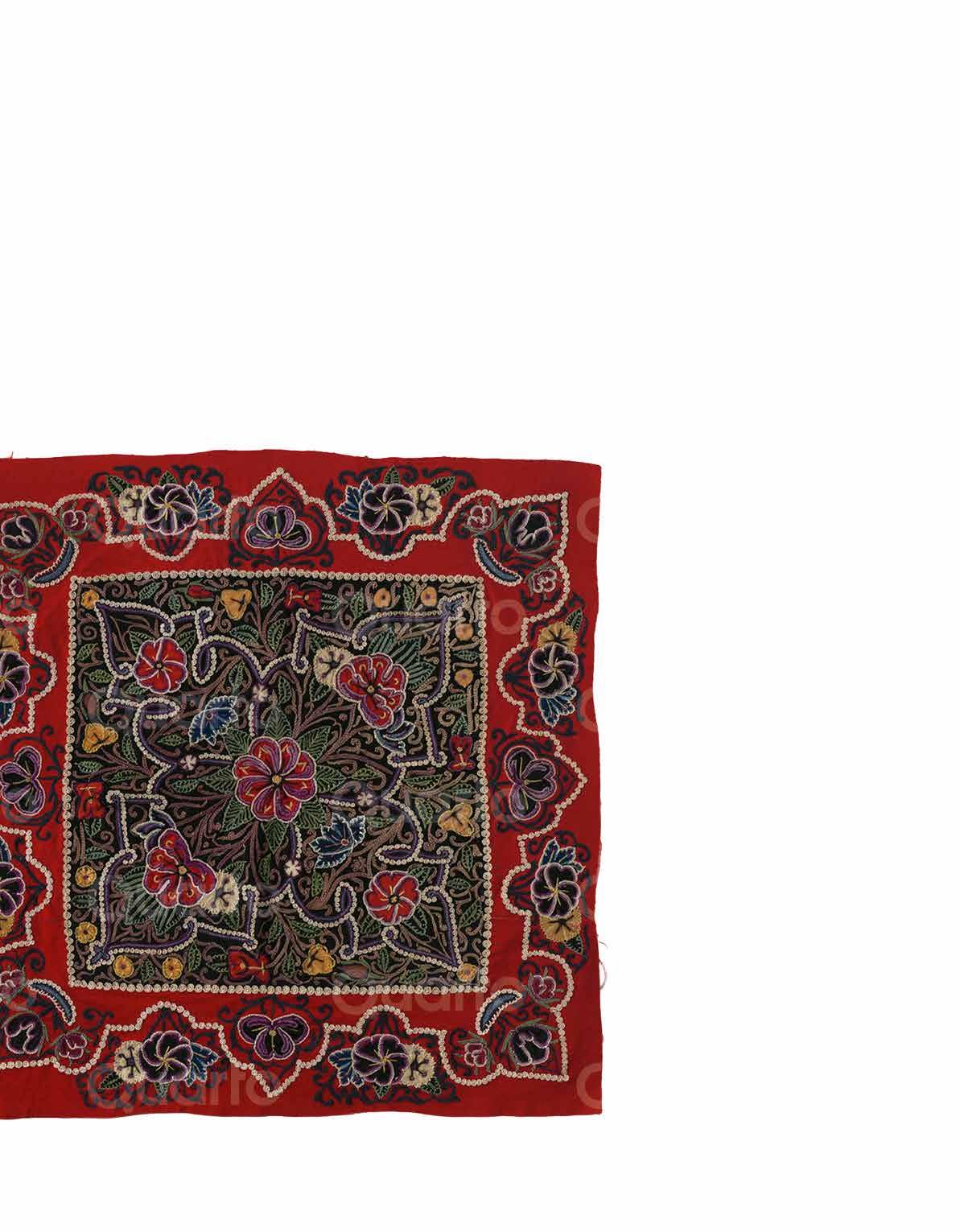 met een wandtapijttechnieken, terwijl andere geborduurd waren. De laatstgenoemde variant was gemaakt van katoen of wol voor dagelijks gebruik, terwijl meer uitgebreide bruids en feestversies gemaakt waren van zijde of een zwaarder materiaal, zoals zijdefluweel, en vervolgens versierd met verfijnd kruissteekwerk of metaaldraadborduurwerk.